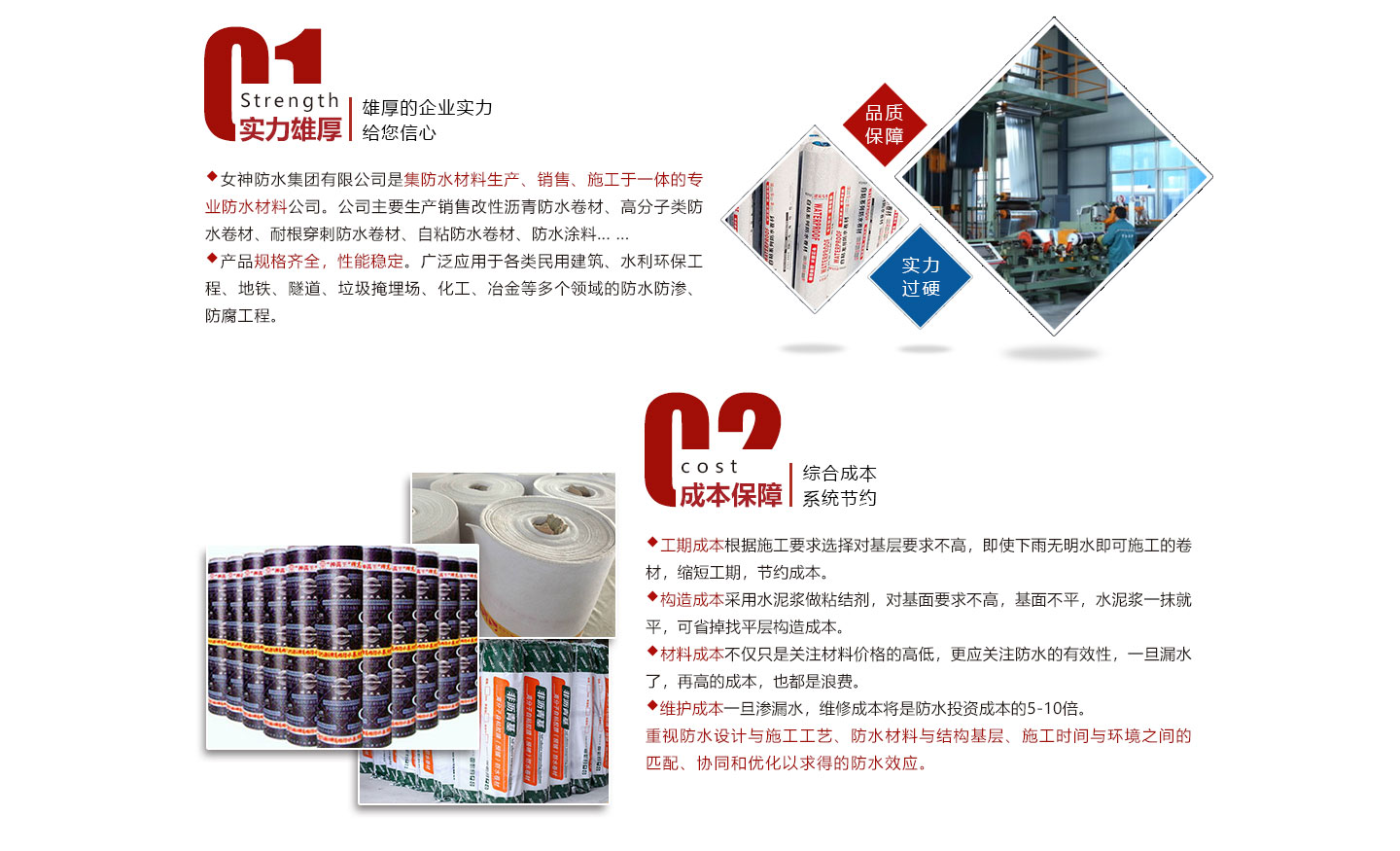 安徽女神建材科技集團(tuán)有限公司是集防水材料研發(fā)、生產(chǎn)、銷(xiāo)售、施工為一體的綜合性防水材料集團(tuán)公司。我公司旗下有多條大型一次成型生產(chǎn)線:SBS改性瀝青防水卷材,DTM聚酯復(fù)合高分子防水卷材,非瀝青基高分子防水卷材,PVC,TPO高分子防水卷材等生產(chǎn)線。我公司秉承“創(chuàng)新發(fā)展、實(shí)惠用戶(hù)”為宗旨,確保生產(chǎn)材料基礎(chǔ)上推出“共享生產(chǎn)廠家”,為開(kāi)發(fā)商、建筑商節(jié)約成本為理念,新理念受到用戶(hù)企業(yè)集采時(shí)一致好評(píng)和認(rèn)可。在互聯(lián)網(wǎng)時(shí)代,我公司將以互聯(lián)網(wǎng)“共享”為發(fā)展理念,為開(kāi)發(fā)商、建筑商、防水企業(yè)提供的產(chǎn)品,真正讓用戶(hù)企業(yè)達(dá)到巨大...